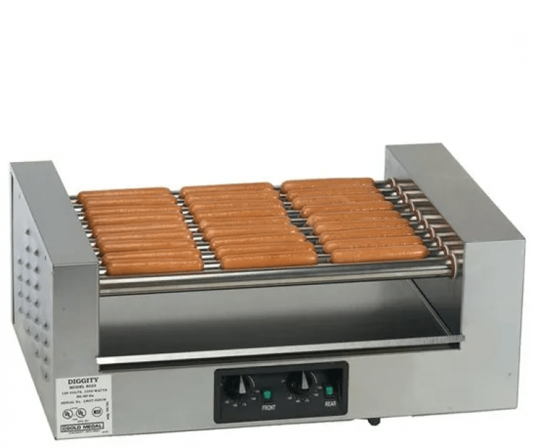 Hot dog roller holds up 25 HOT DOGS. SUPPLIES NOT INCLUDED